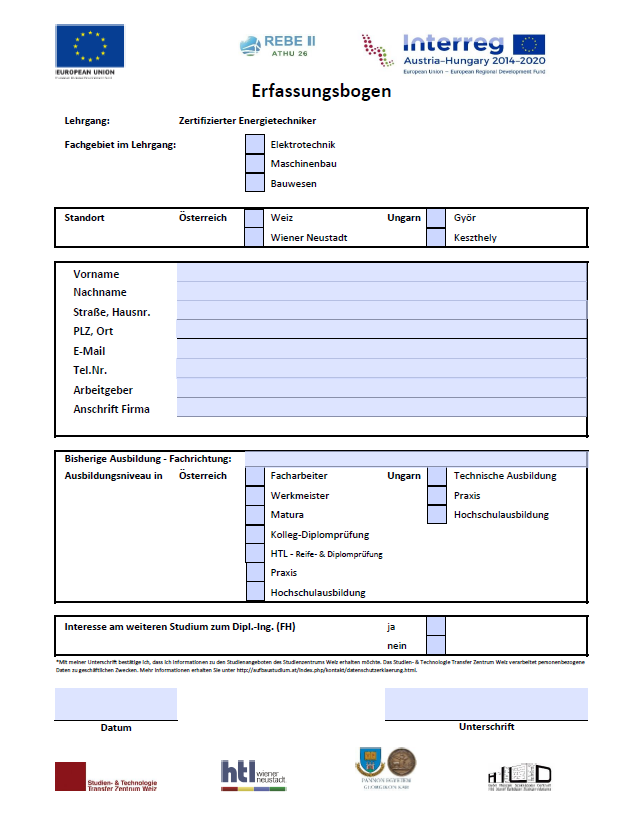 Wir möchten Sie gerne über eine neue berufsbegleitende Ausbildung zum zertifizierten Energietechniker an der HTL Wiener Neustadt ab Anfang 2019 informieren.