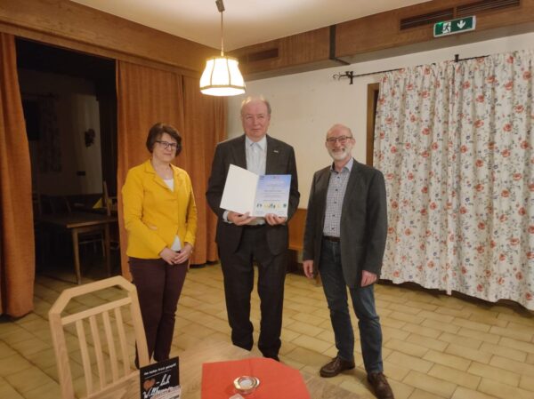 Auch Frau Karin Zoubek-Schleinzer, CMC, von der NÖ Dorf- und Stadterneuerung besuchte gemeinsam mit Regionalberater Hr. Ing. Walter Ströbl die Generalversammlung und überreichte Herrn Mag. Csenar, für sein Engagement für die Gemeinde, die Silberne Ehrennadel des Verbandes.