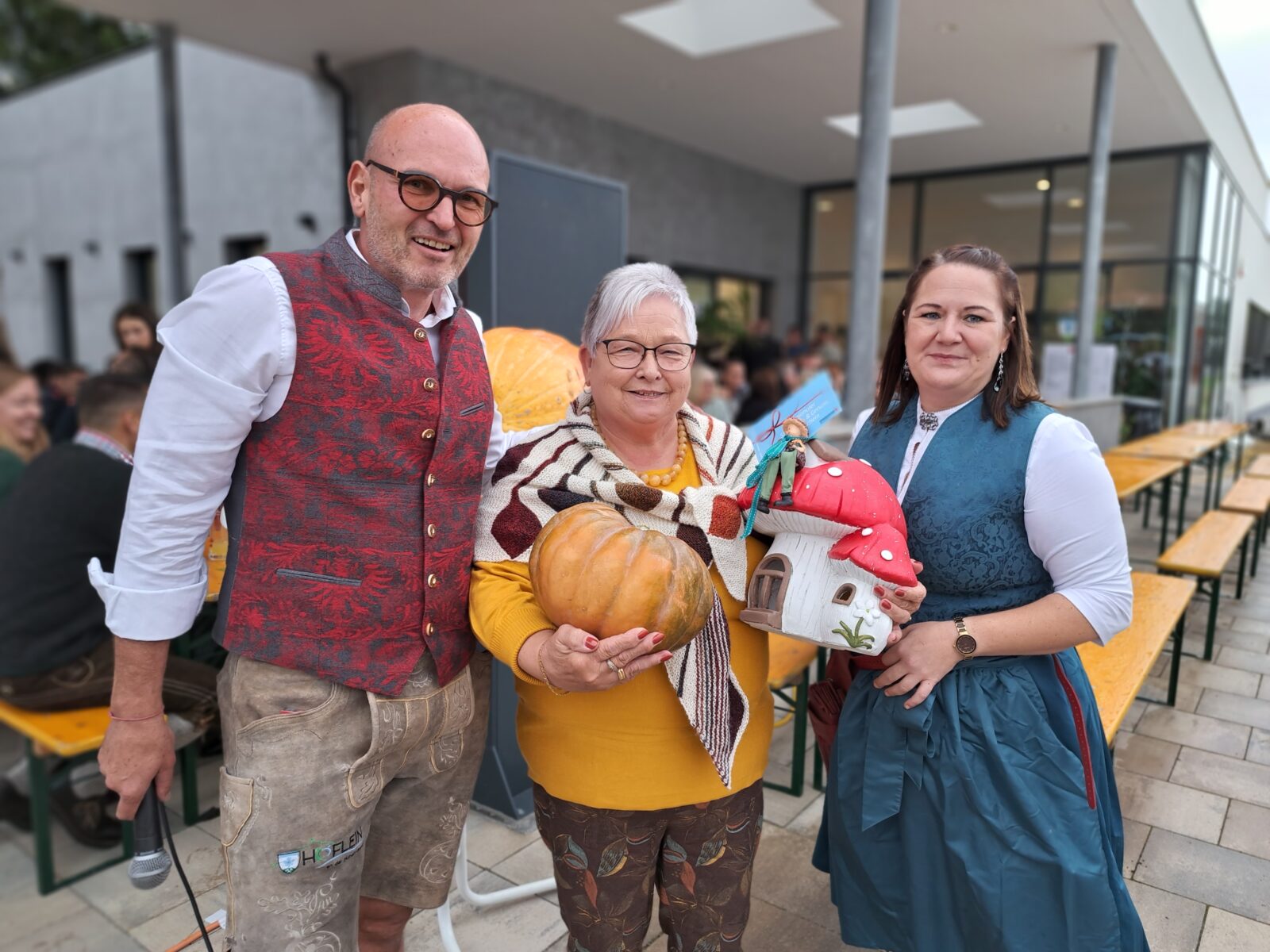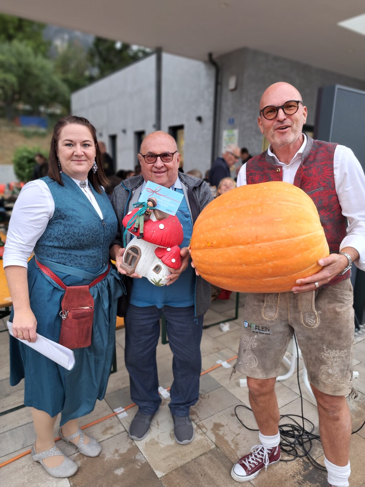 Beim Kürbisschätzspiel hat Frau Hermine Hornung mit nur 1g Differenz gewonnen. Den größten Höfleiner Kürbis – mit 24 kg – hat Familie Buzanich mitgebracht und konnte somit auch den Preis dafür abstauben.