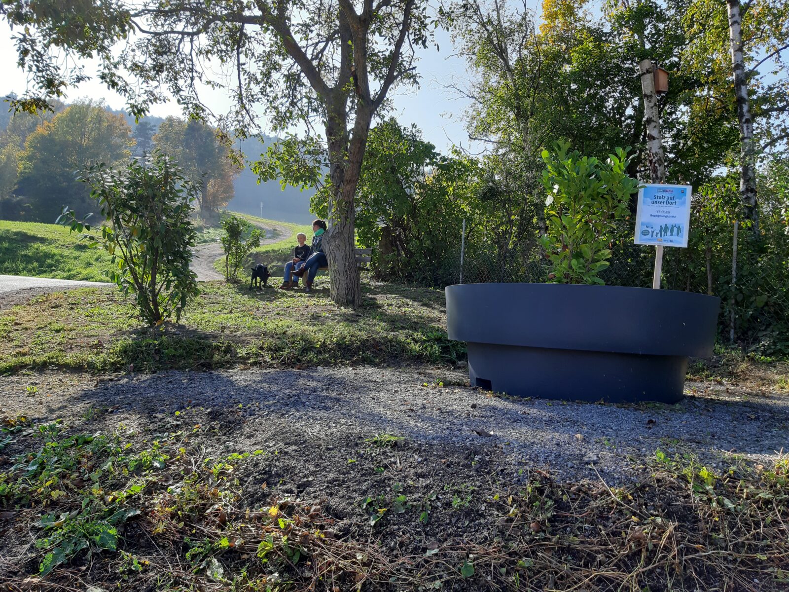 Die Flächen wurden terrassiert, bepflanzt und neu angelegt. Am oberen Punkt des Verbindungsweges wurde ein Begegnungsplatz für Wanderer und Spaziergänger bei der Übersichtstafel „Bewegungsarena 5 Freunde“ situiert. Weiters wurde eine Parkbank und ein bepflanzter Sitztrog mit 1,80 m Durchmesser für die müden Wanderer und Spaziergänger aufgestellt. Dieses Projekt wurde durch eine Förderung des Landes NÖ im Zuge der Dorferneuerungsaktion „STOLZ AUF UNSER DORF“ unterstützt, denn wir Höfleiner sind stolz auf unser Dorf.
