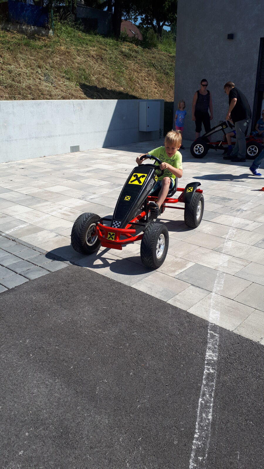 Mit modernen Gokarts konnten die Kinder am 04. Juli ihre Muskelkraft und ihr Geschick unter Beweis stellen und eine ausgeflaggte Grand Prixx Strecke durchfahren.
