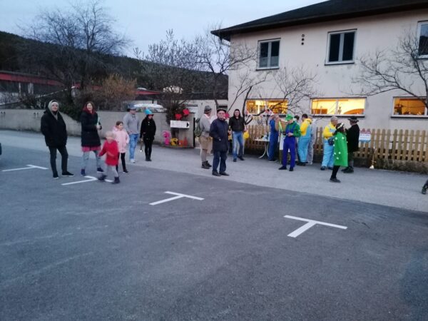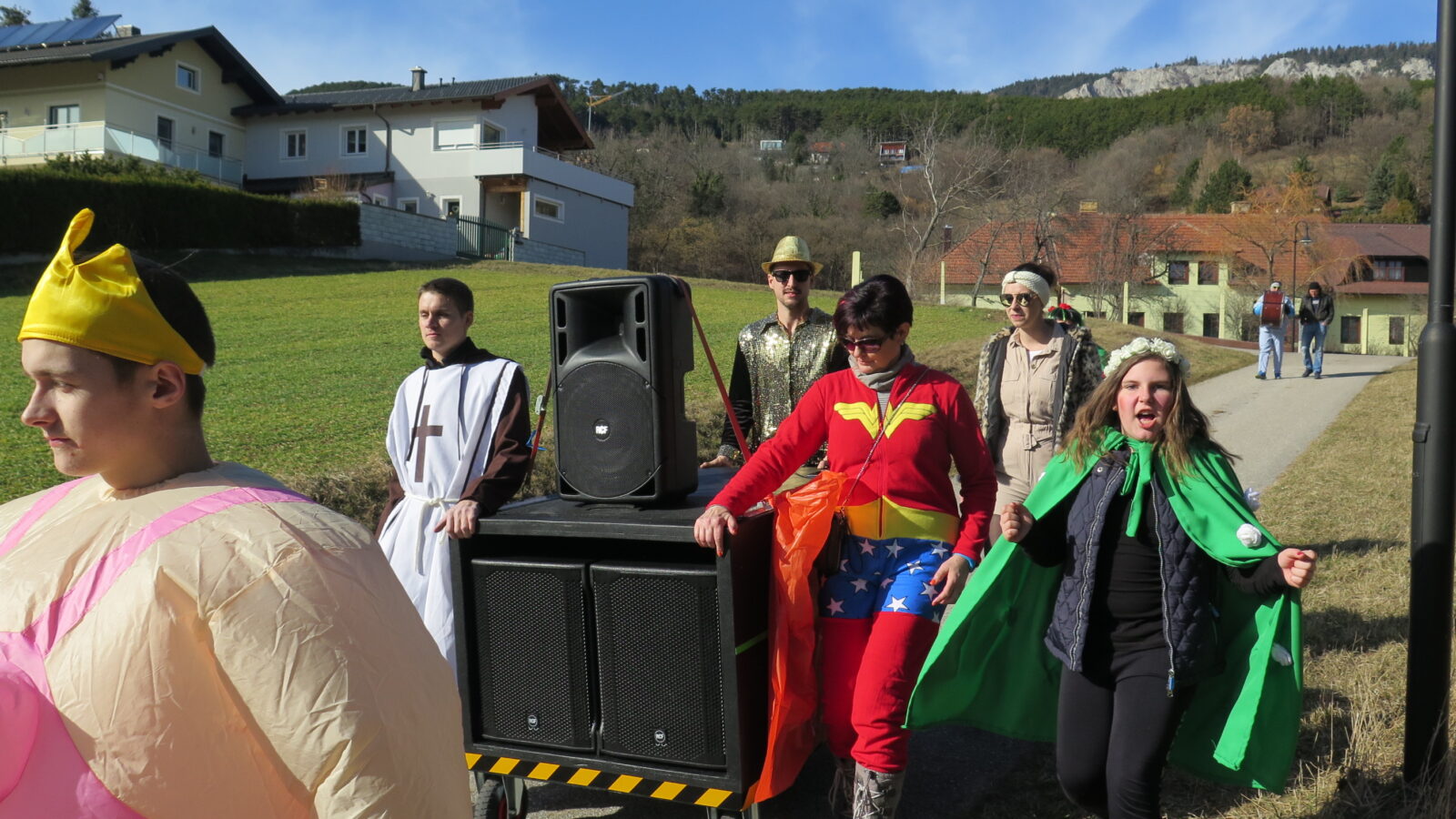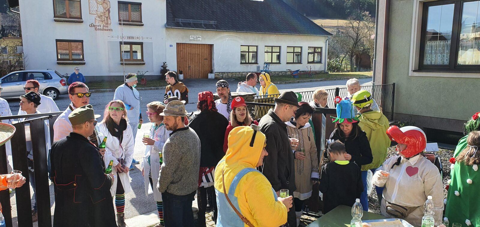 HÖ HÖ erklingt der Narrenruf der Höfleiner —Faschingssamstag 10:00 Uhr: Die Höfleiner Narren veranstalteten das traditionelle Fleischbetteln in Unterhöflein. Nach einem Gruppenfoto geht es los. Die Höfleiner Fleischbettler starten unter der musikalischen Begleitung der Bergkapelle Hohe Wand ihre Runde durch Höflein. Die Organisatorin Melanie Hornung hat es wieder geschafft, viele Ortsbewohner zum Mitmachen zu motivieren. Es wurde von Haus zu Haus gewandert und um Spenden für das 1 Woche später stattfindende Fleischauskochen im Landgasthof Jautschnig gebeten. Eine tolle Veranstaltung mit einer jahrzehntelangen Tradition in unserer Gemeinde.