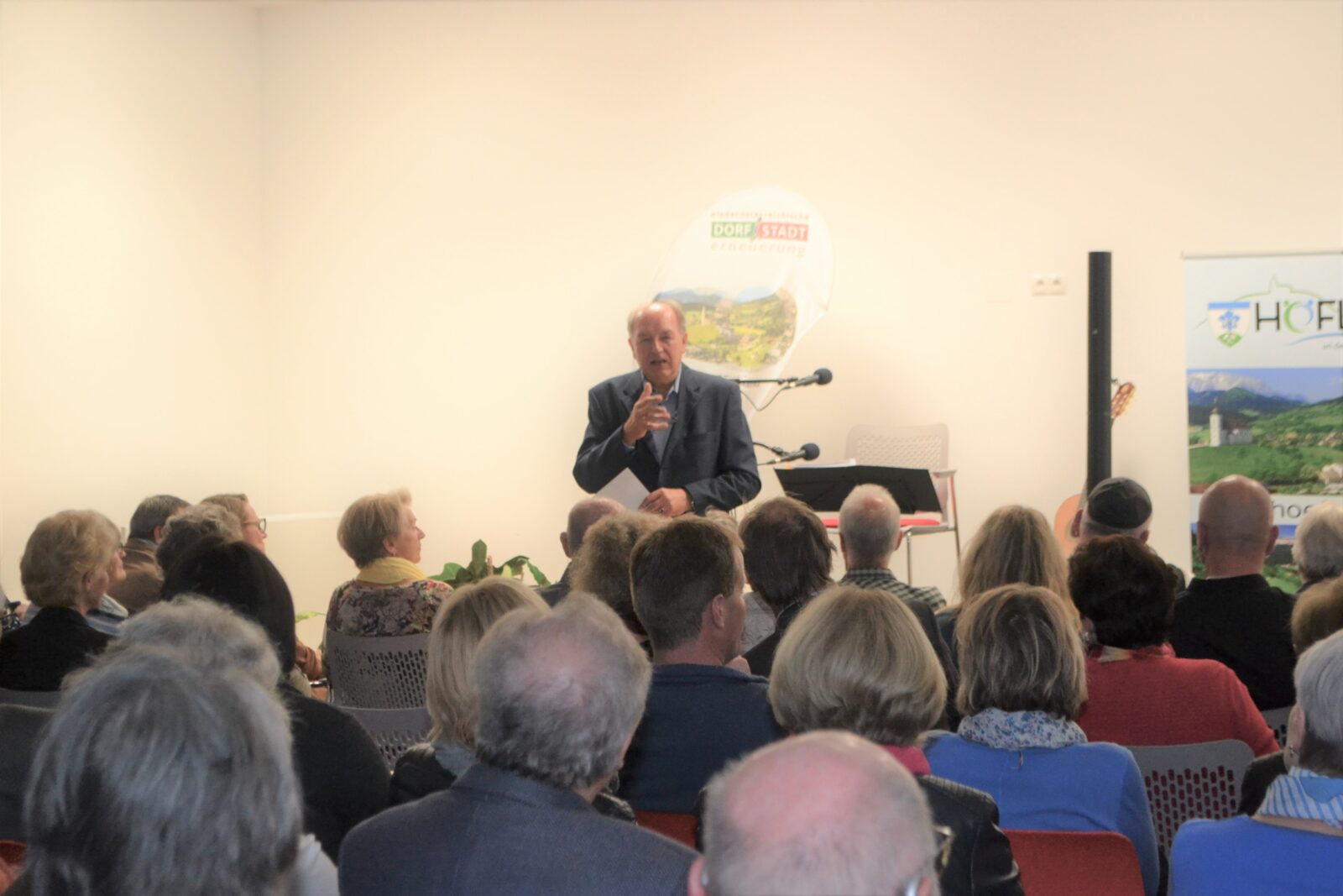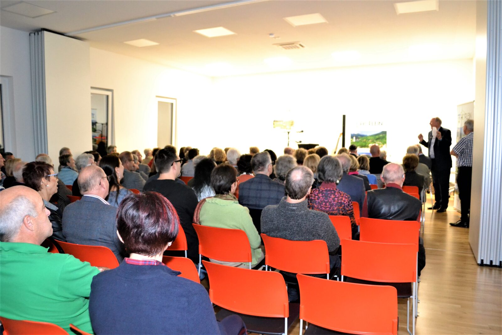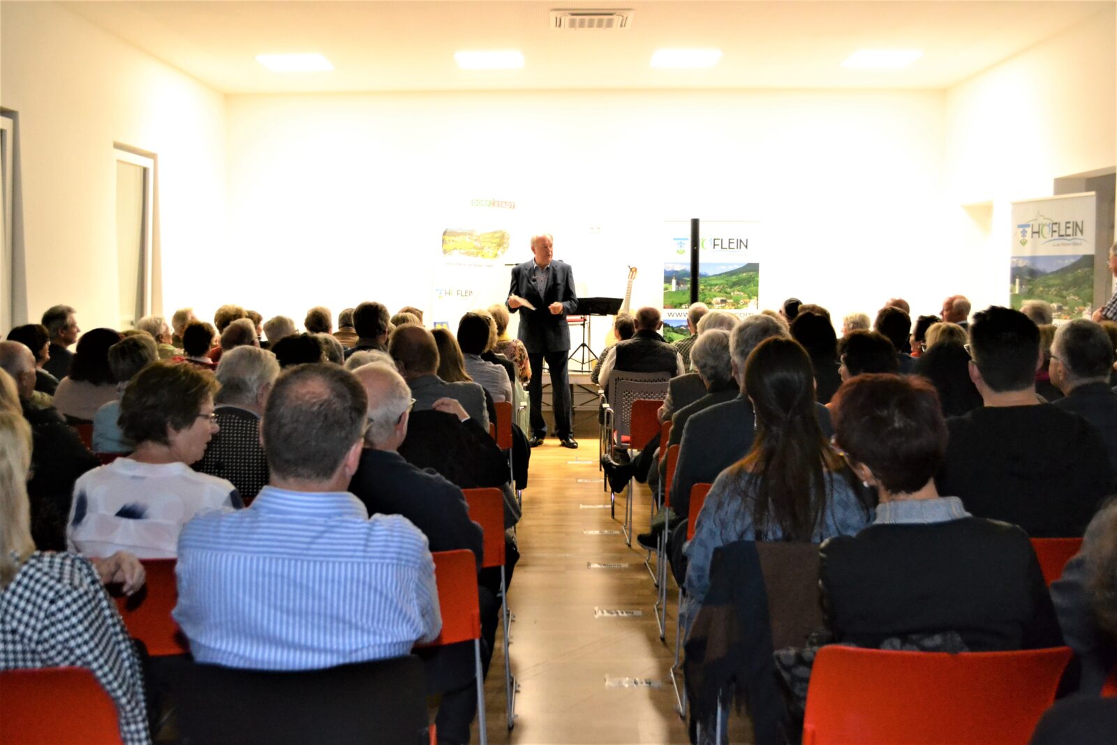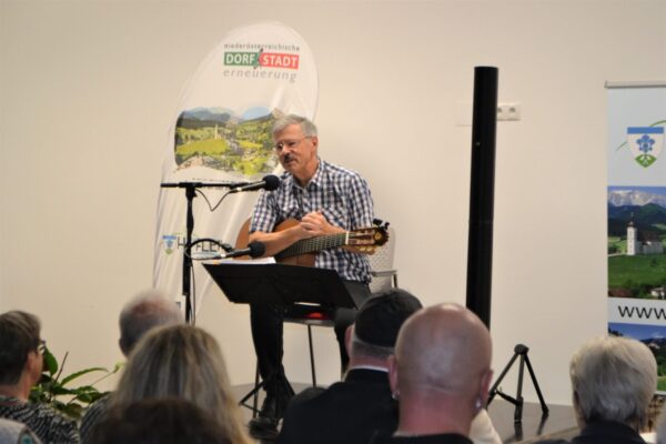 Der sympathische Veranstaltungssaal im neuen Gemeindezentrum war gefüllt mit begeisterten Gästen, die vom Kabarettisten mit humoristischen Alltagsgeschichten und Liedern aus „gestern und heute“ zu begeisterten Lachstürmen verführt wurden.