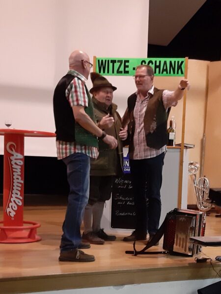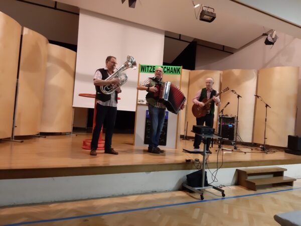 Herr Hubert Legenstein und das Stehgreif-Trio brachten mit ihren musikalischen Einlagen und Witzen das Publikum zum „Lachen ohne Ende.“ Schließlich animierten diese auch einzelne Besucher, sich mit ihren Einlagen einzubringen.